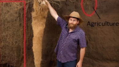 Natura kontra rolnictwo: lekcja z korzeni To mocne porównanie pokazuje system korzeniowy rodzimej trawy preriowej (po lewej) w porównaniu z typową uprawą rolną